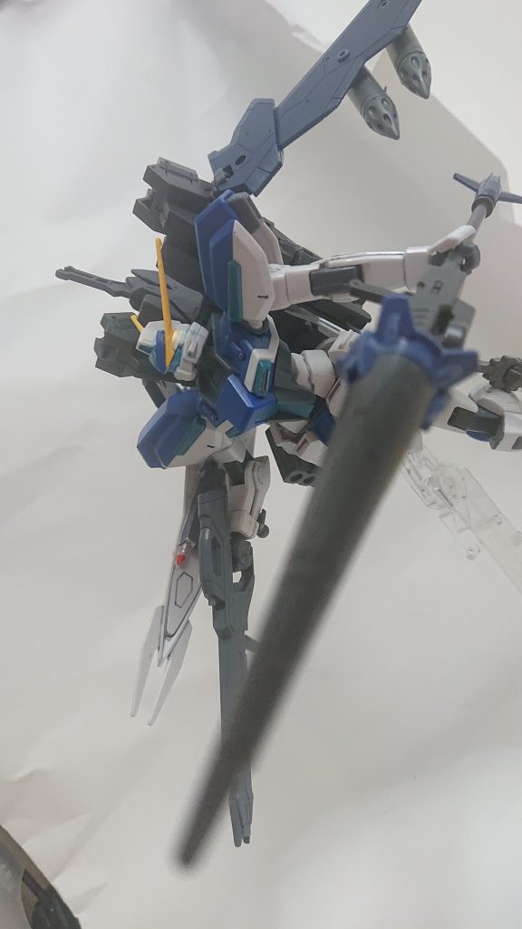 腰のロケット砲はオリジンザクⅡのバズーカ弾倉、脚のダガーはダブルオーダイバーの剣を改良。