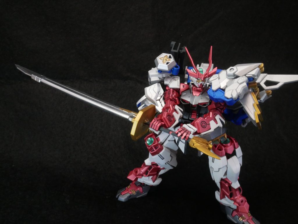 通常形態の肩アーマー、背部の太刀と入れ替えて完成です。