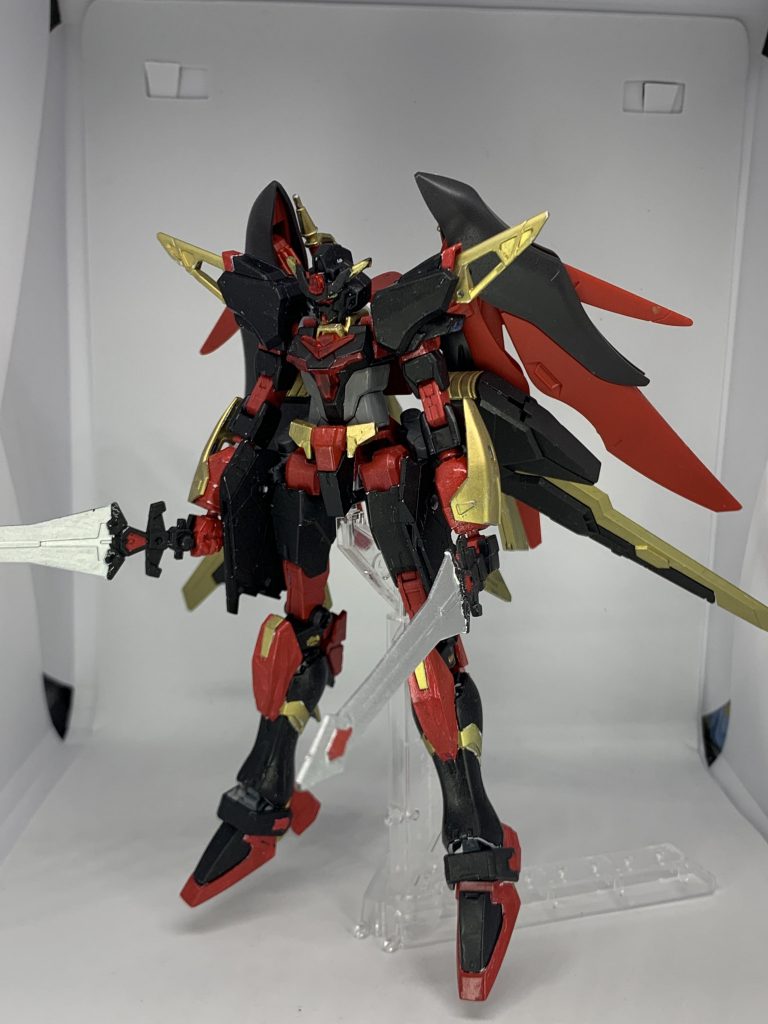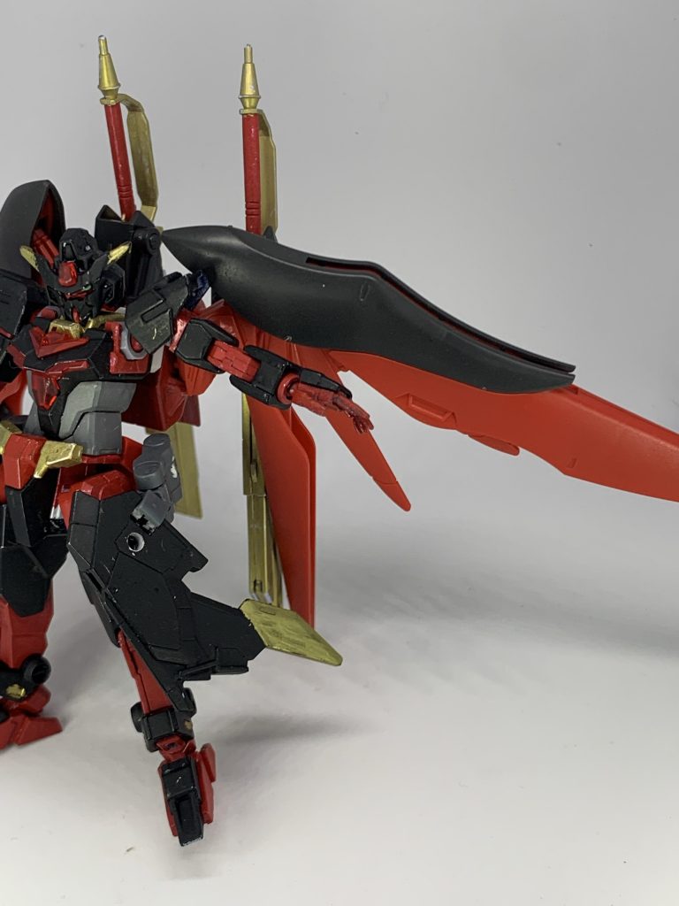 射撃特化、ムスペルヘイムアーマー。まぁーゴテゴテ盛りすぎたせいでポロポロパーツが落ちる落ちる。ダブルオースカイメビウスとアメイジングストライクフリーダムのミキシング。