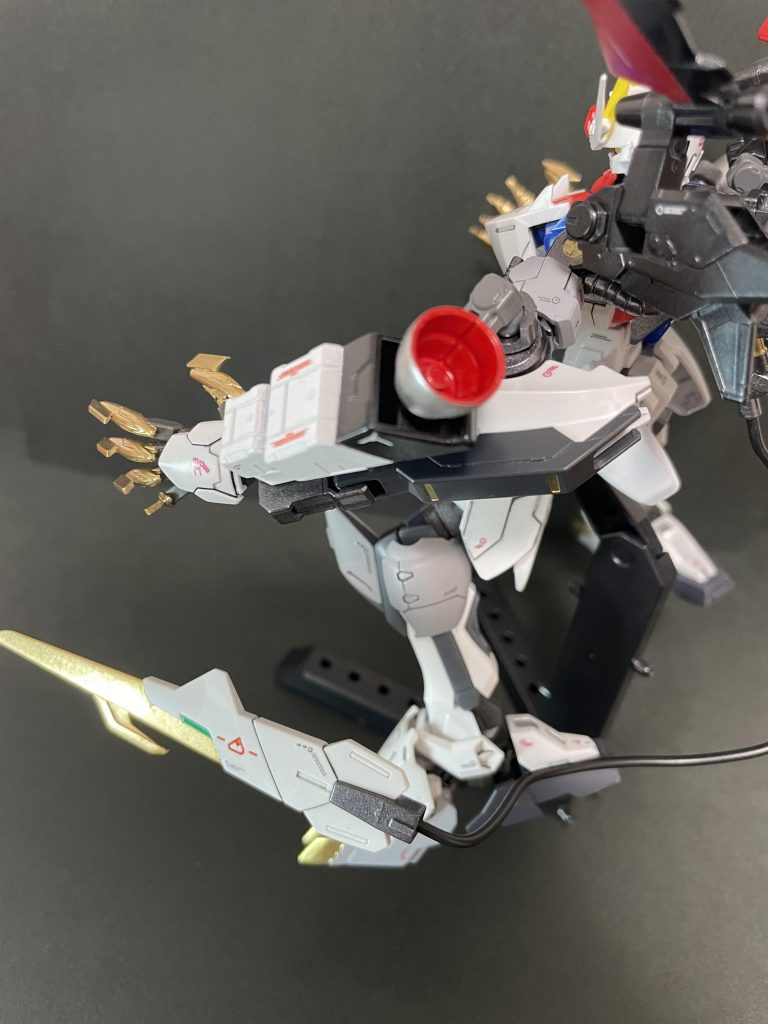 両腕とキャノン砲を外し、バックパックと足首を変形させることでバルバトスフォームへ。