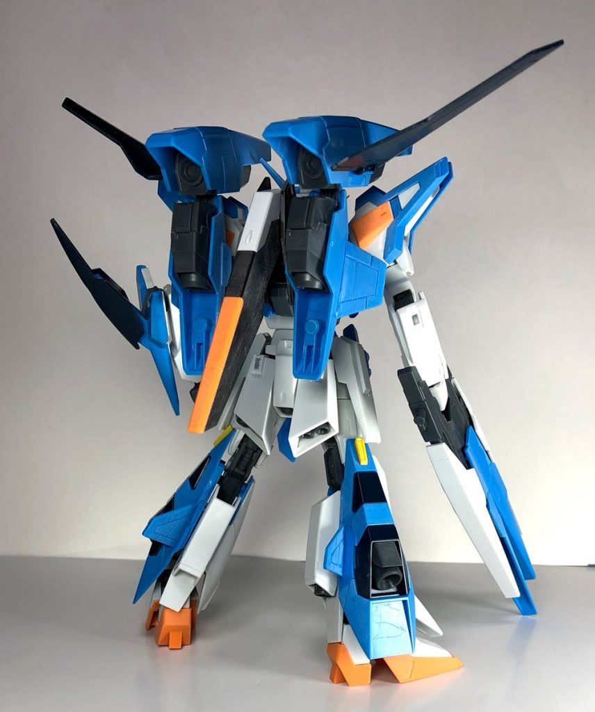 ウェイブライダー形態は肩アーマーのボリュームを増したため収納のクリアランスを確保していますが、パッと見の変化はテールスタビレータくらいです。