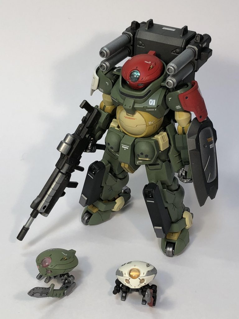 お腹と関節部を通常グリモアっぽい雰囲気に。本体の緑は、ガイアカラーのボトムズカラーからです。