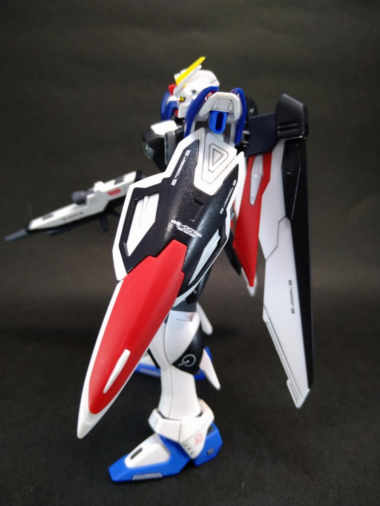 部分塗装を前提に胴体+バックパックをウイングガンダムより。頭部+手足をフリーダムガンダムでミキシング。特別プロポーションの変更等はしていません(汗)