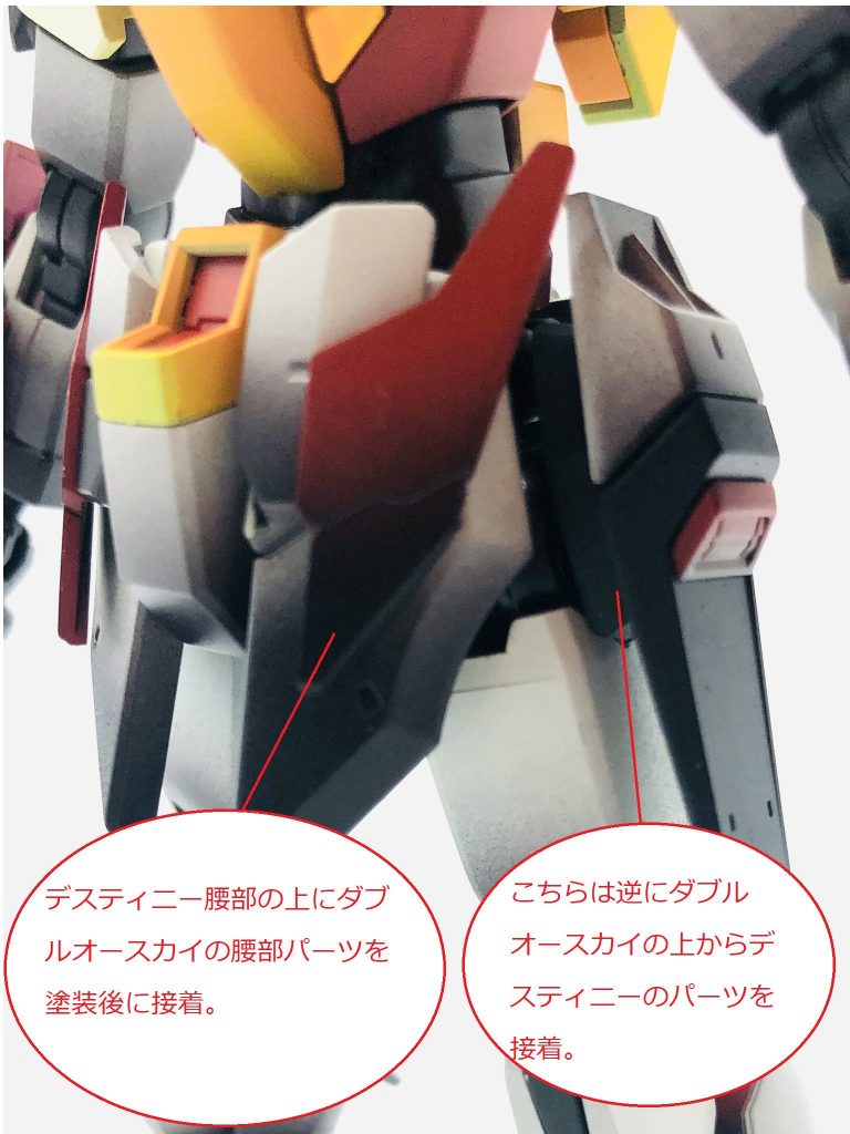HGダブルオースカイとHGデスティニーのミキシングとなります。ダイバーズ放送当時から放置してたモノをやっと完成させました。数年前に制作した『ガンダム・アストレイノーハアト』と合わせた自分設定(笑)も兼ねて閲覧していただけるとありがたいです。