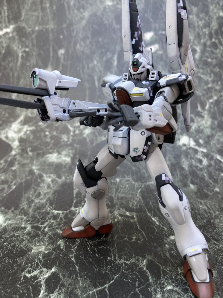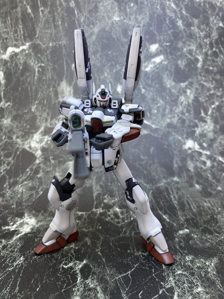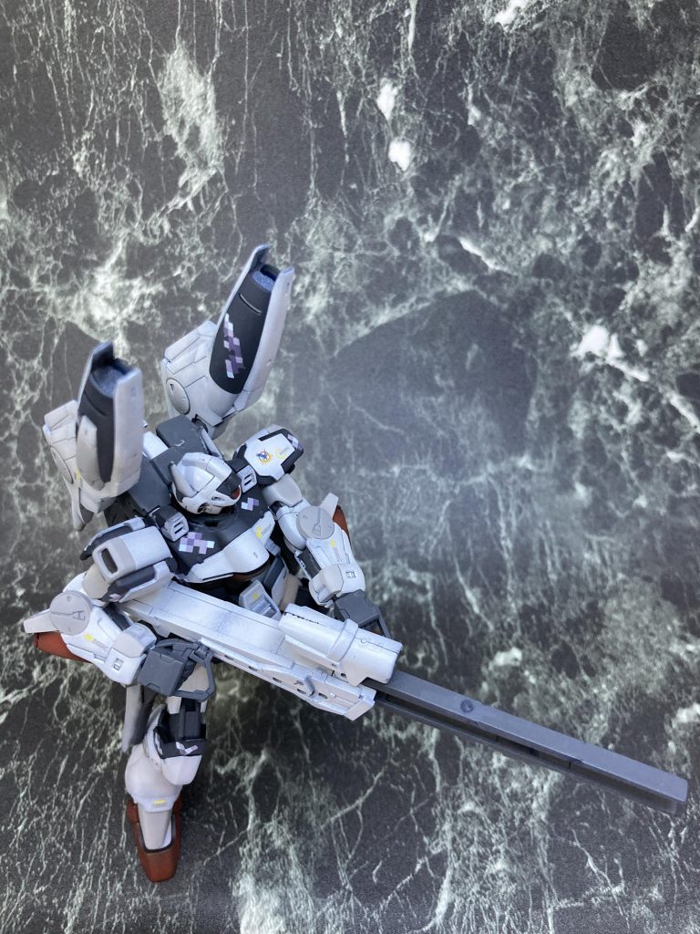 当初のイメージでは、もっと鮮やかな白と部分部分に黒と赤を配す予定だったのですが、黒立ち上げをした結果かなりシブ目のミリタリー感が出ました。
