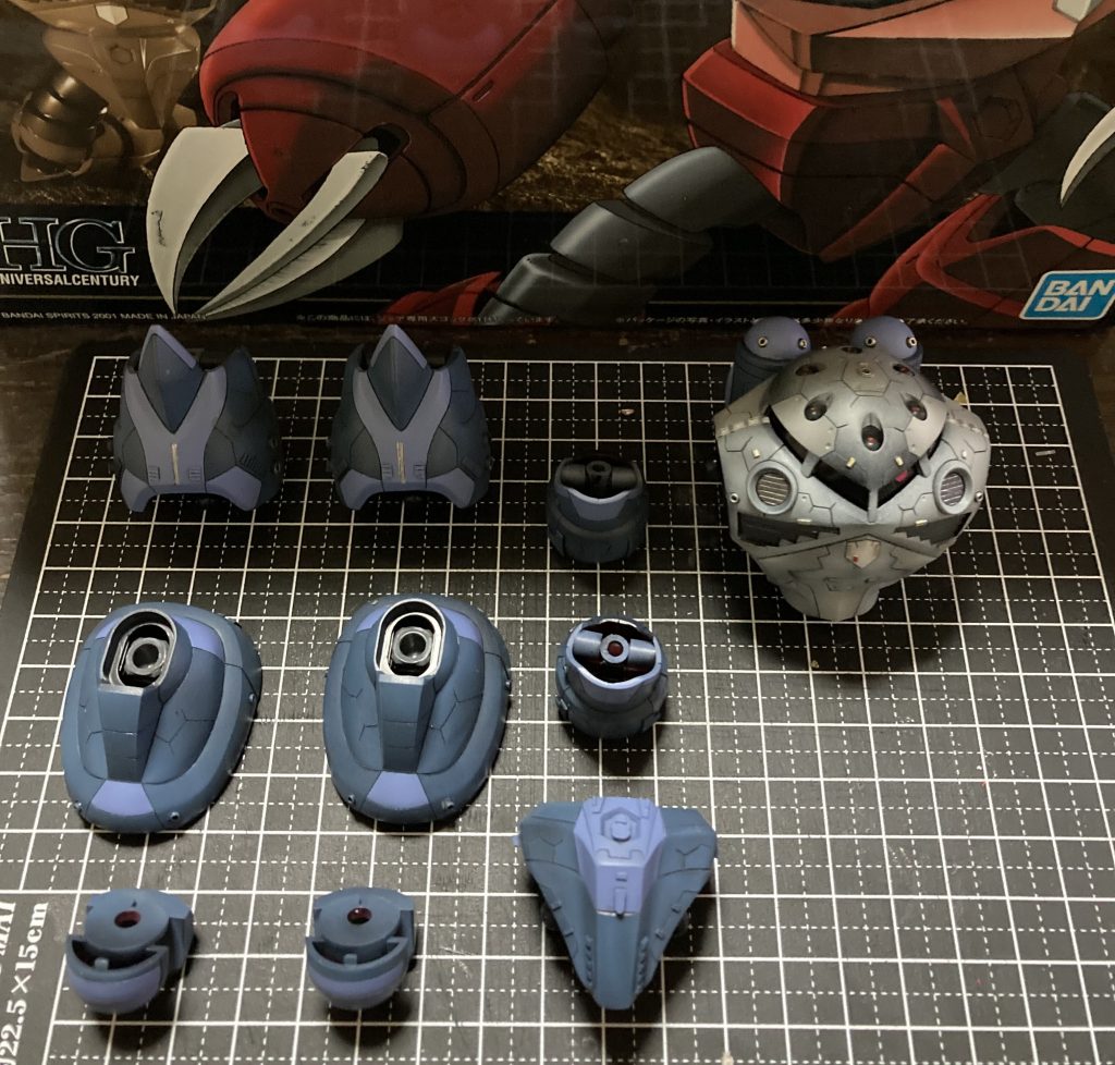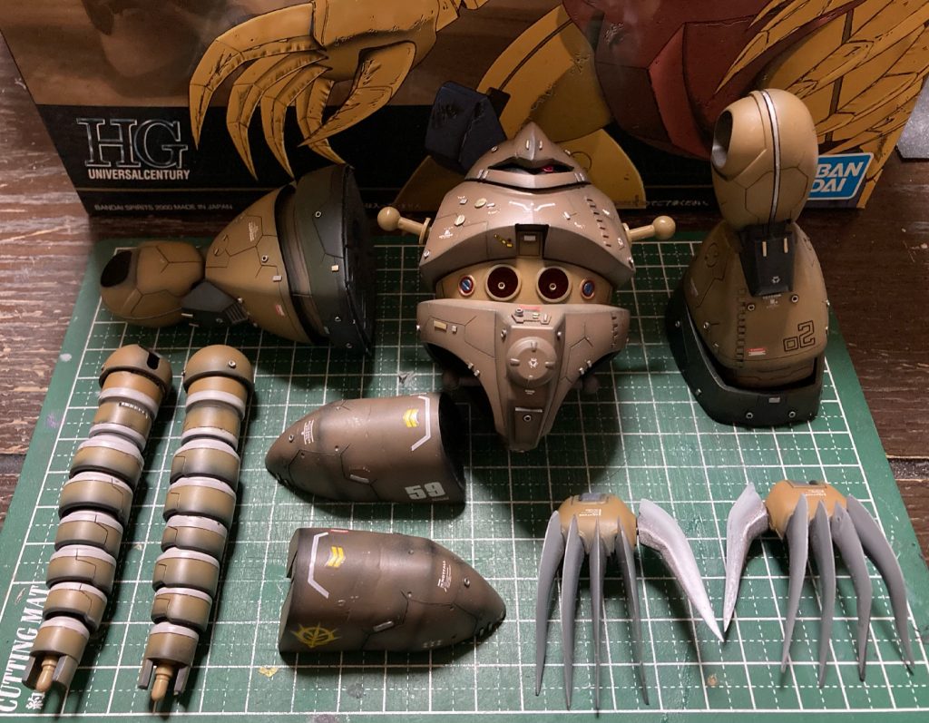 アッガイは思い切って頭部を埋めて睨み効かすイメージを心掛けましたが、カモノハシみたいな顔つきになってしまいました💦