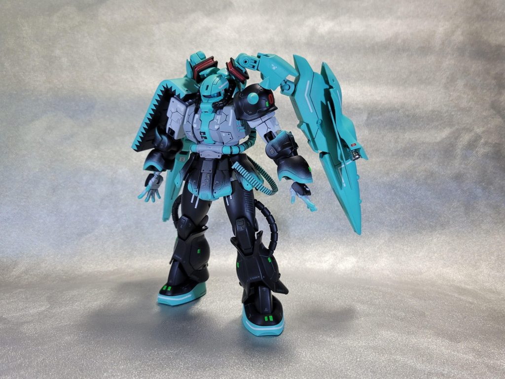 各所スジ彫りやプラ板でディテUPを行い、かっこいい初音ザクを目指してみました。