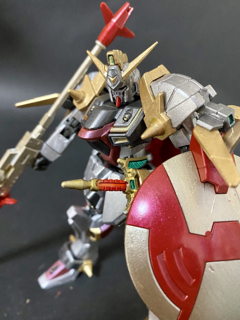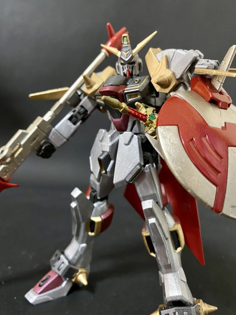 ナイトガンダムを意識してシルバーを基調に筆塗り全塗装したものです。