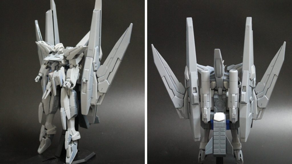 機体そのものはザラキエルをベースに、余剰のハルートやジャンクのスクランブル、アヴァランチエクシアなど使用しました。