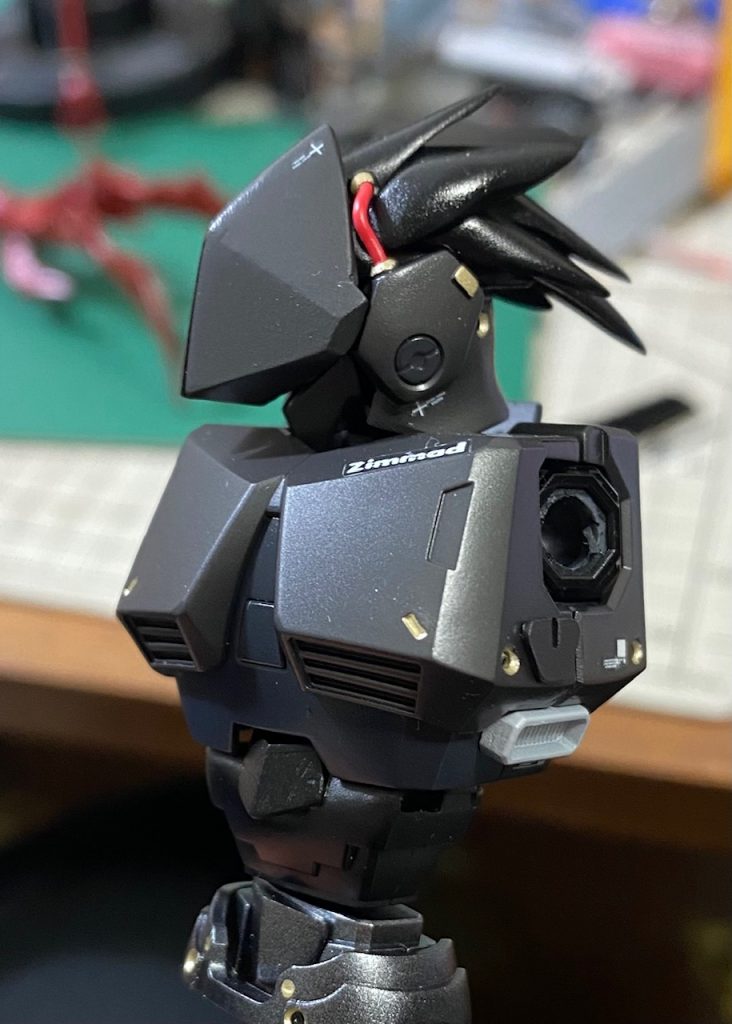 頭部。ギャンスロットの頭部パーツにエポパテを盛って削って作成しました。タテガミに見えるよう5㎜プラパイプを削って接着しています。イメージ通りの頭部が出来ました!