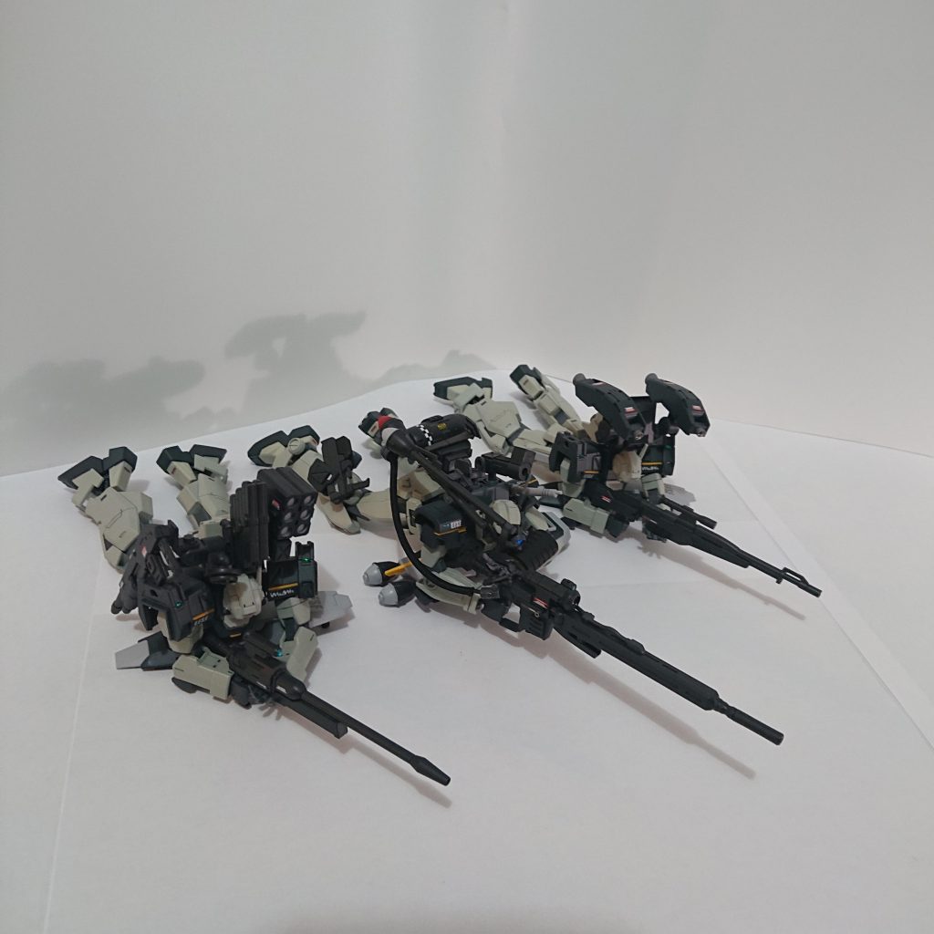ビルドファイターズのレナード兄弟機みたいでとても良いですね。みんな同じポーズの画像は仲良し感出ててちょっと弱そうに見えるのも面白いと思いました。