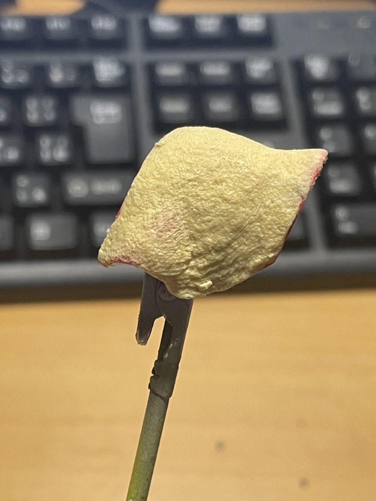 エポキシパテを薄く張って歯ブラシで擦ってみました。