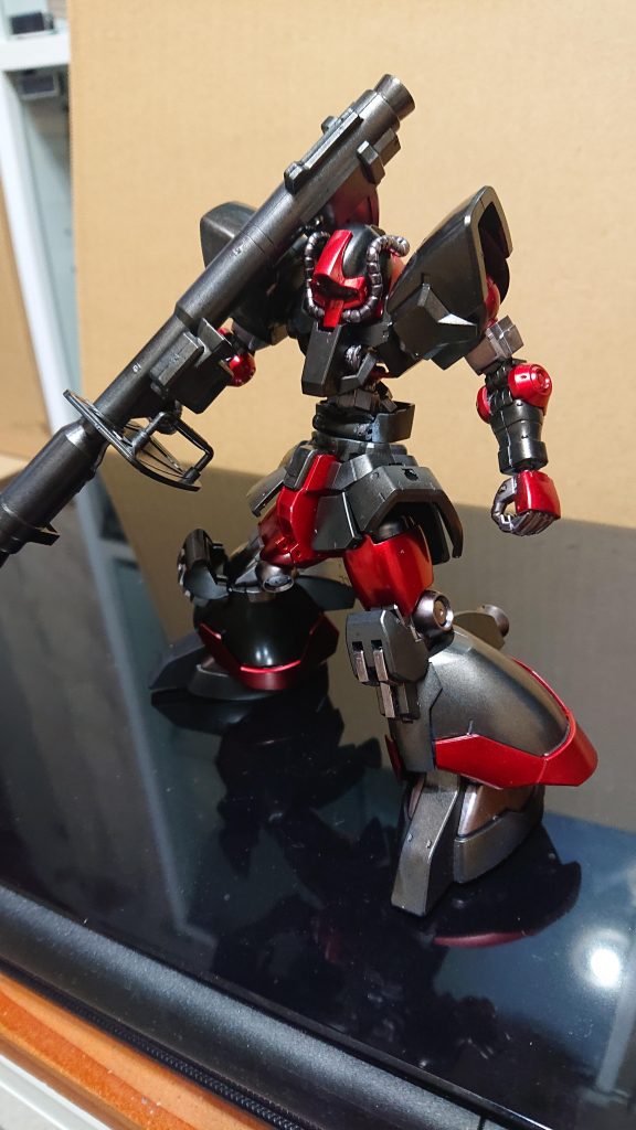 塗装はガンダムマーカーメタリックブラック、ロイヤルメタレッド、ヘビーガンメタリックを使用。