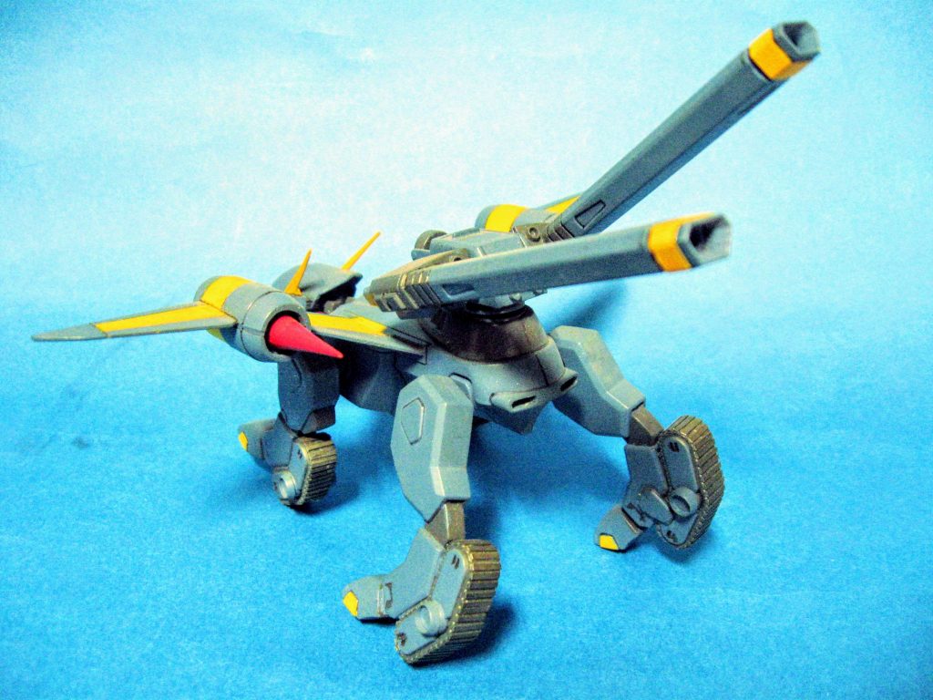 左はHGのキットを軽くレッド系とスモークグレーでシャドー吹きしたもの、右はトイのラゴウを小改造とグラデーション塗装したものです。