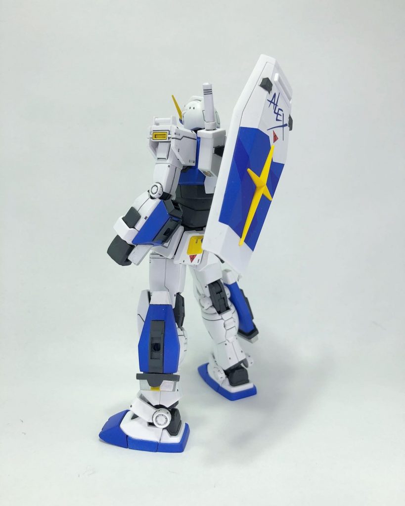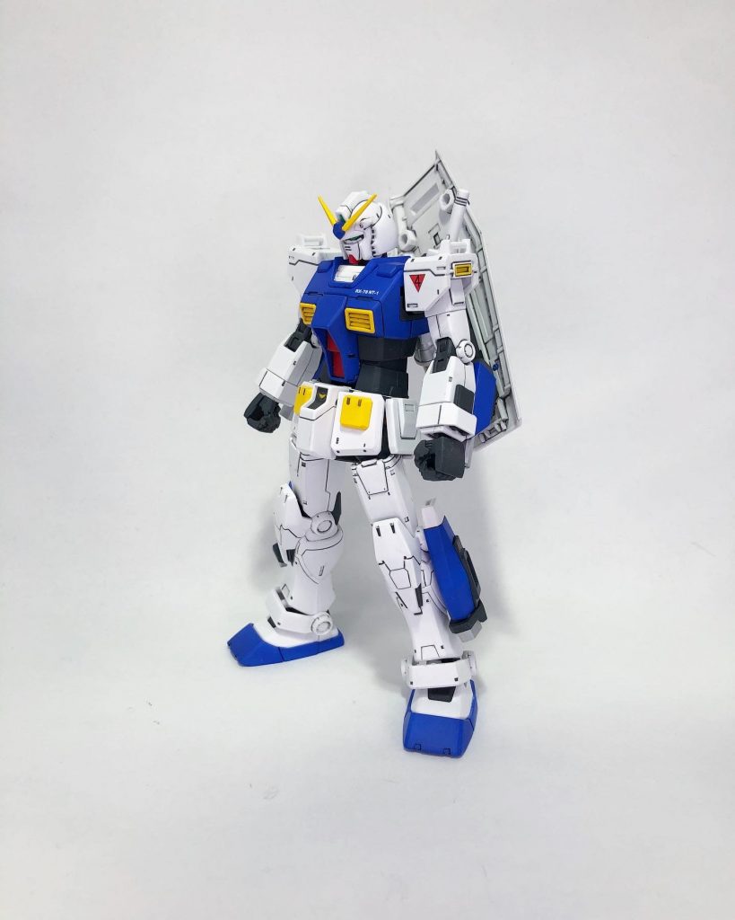 HGUC RX-78-2 ORIGIN版(以下オリジン版)を追加パーツをスクラッチ&カラーリングを変更し、RX-78NT-1 ALEX(以下アレックス)風に作成しました。