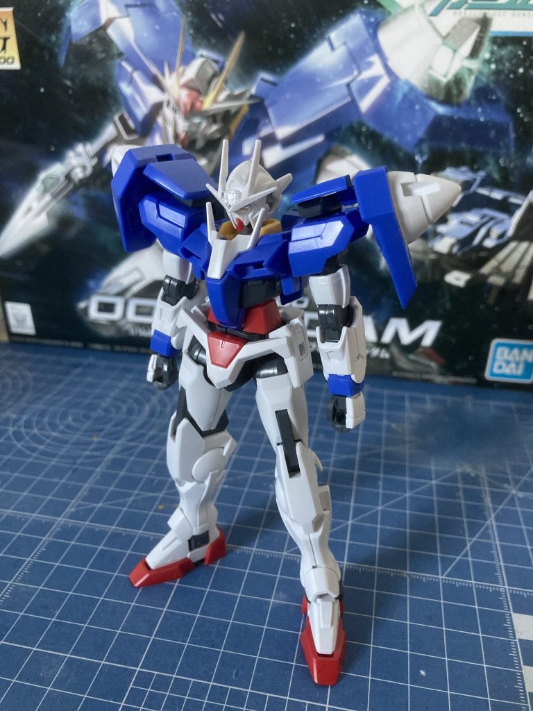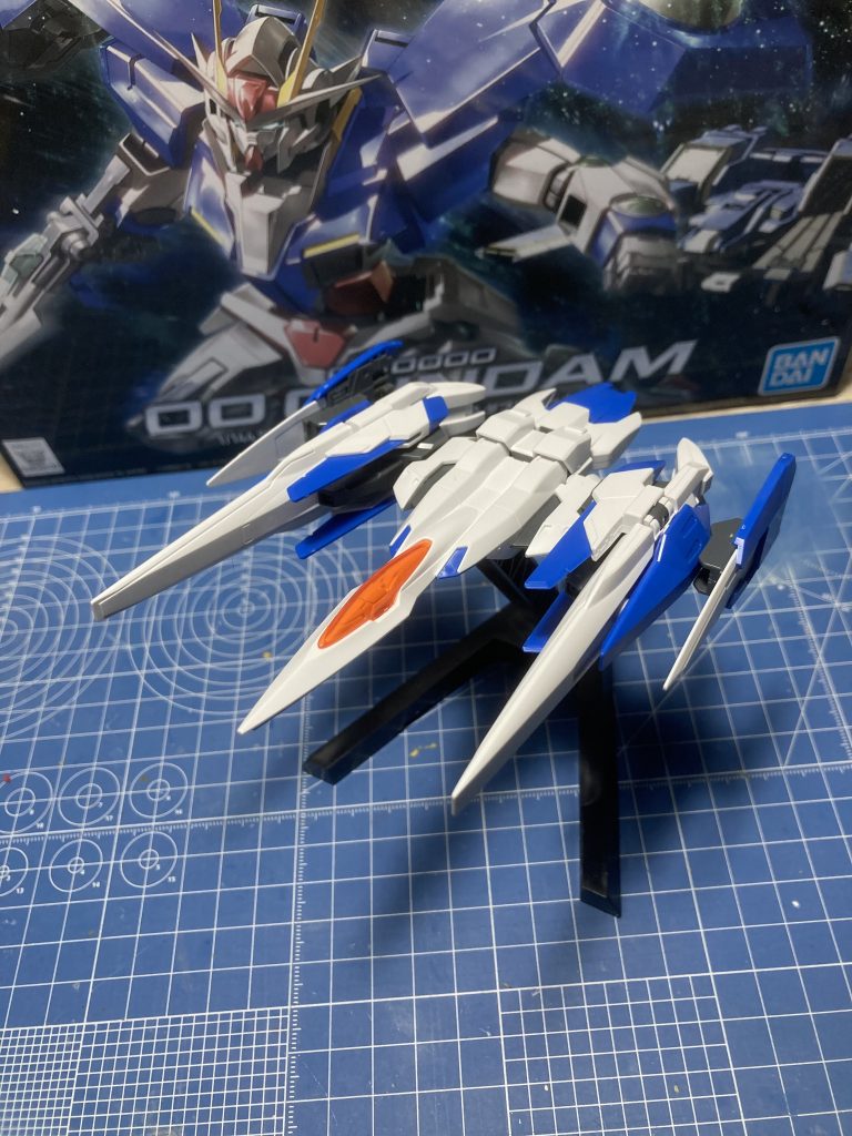 昨年、たまたまHGオーライザーが売っていて珍しいから購入して、後追いでダブルオーガンダムも購入。オーライザーだけパチ組みして1年ほど放置していましたが、Twitterのフォロワーさんの企画をきっかけに成型色活かしで制作しました。