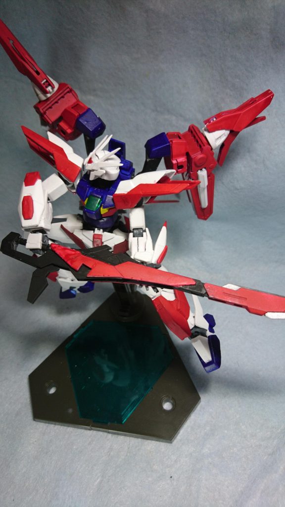 ダブルオースカイを近接特化型と遠距離特化型にすることをコンセプトに製作しています。ちなみに、近接特化型はセブンソードに遠距離特化型はセブンガンになるようにしています。