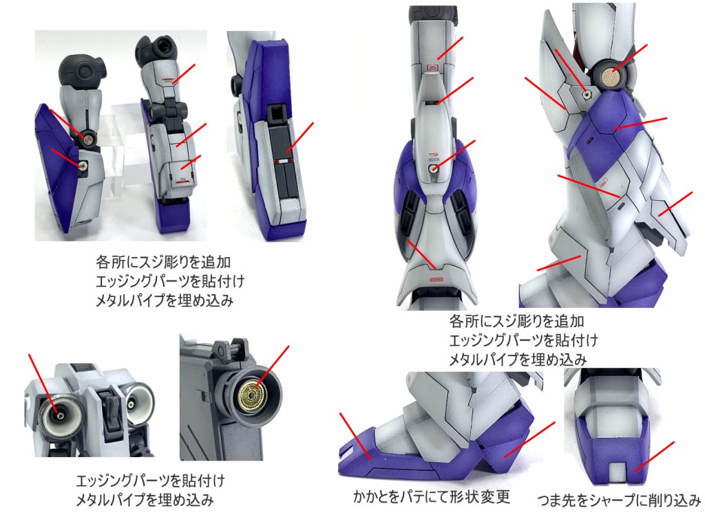 各所にスジボリにて情報量を追加して塗分け 太ももをパテにて幅…