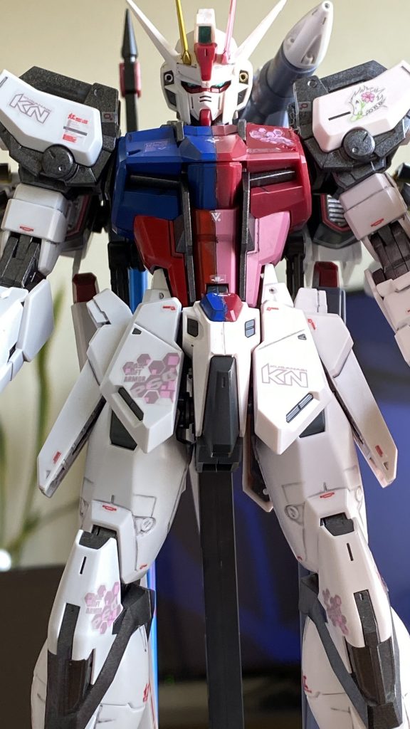 5/10はキラとカガリの誕生日という事で、ストライクルージュを半分マスキングして右半身を天空のキラ仕様で塗装しました!