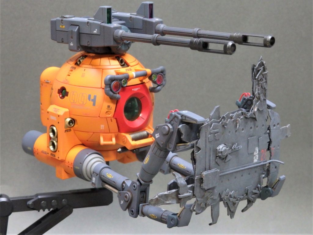 自作のスペースデブリが凄いですね。めっちゃリアルな出来映えなのでキット付属の物かと思いました。