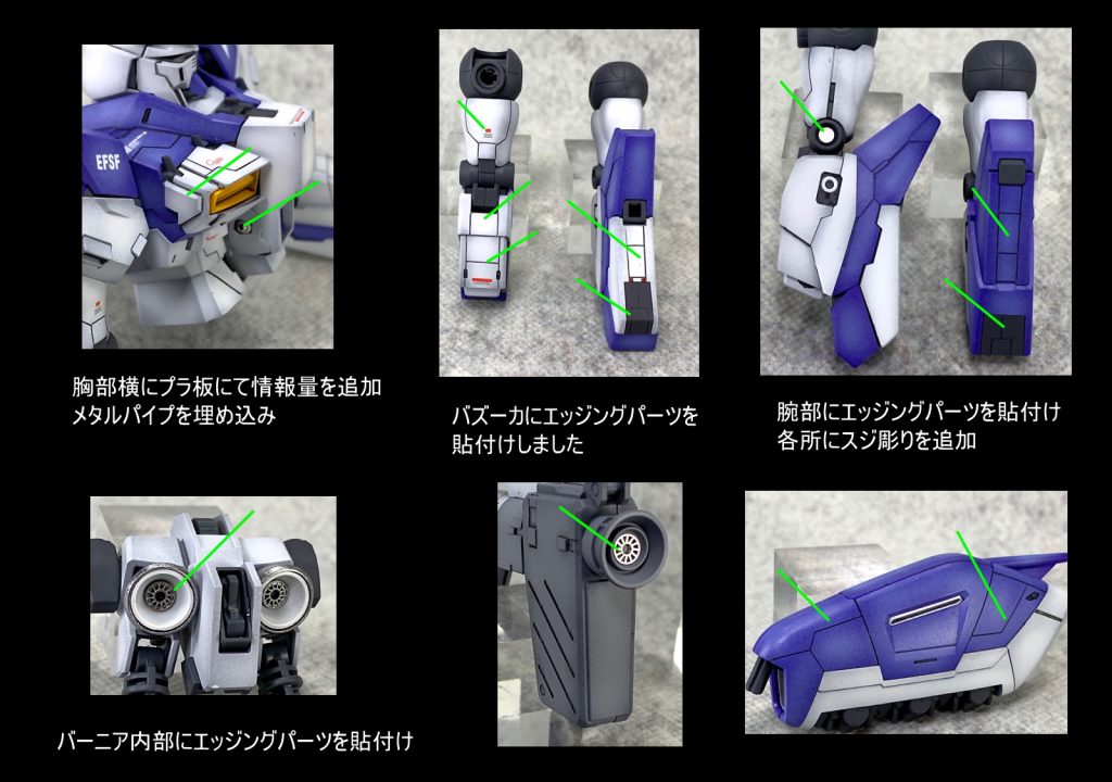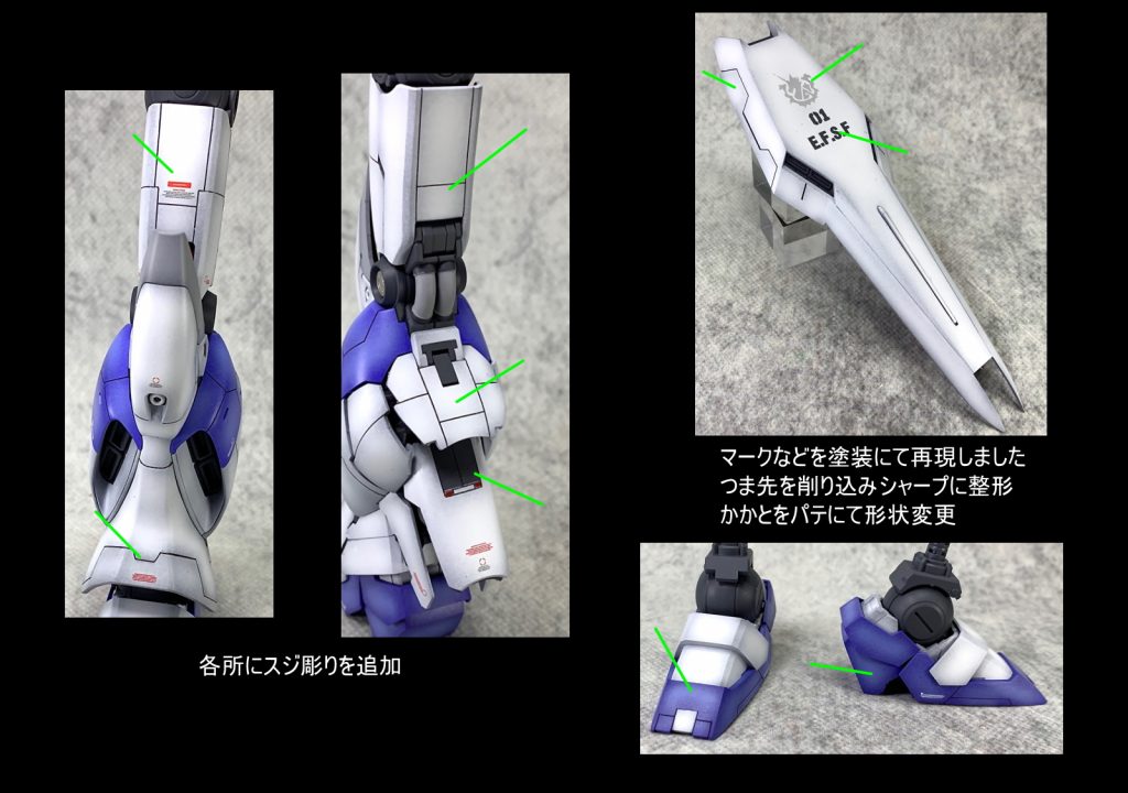 太ももをプラ板にて1mm幅増ししました。 各所にスジ彫りの追…