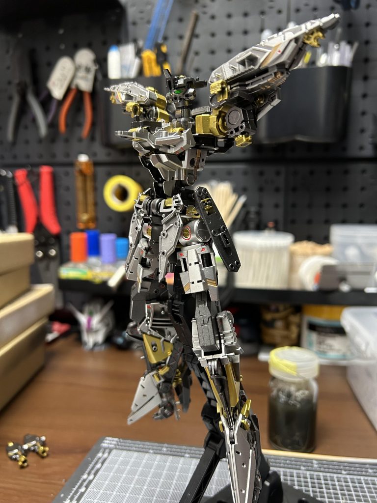 組んでみた印象は塗装前だと可変機構もあるためか、緩くてフニャフニャした印象ありましたが塗装後は割とカッチリした感じあります。