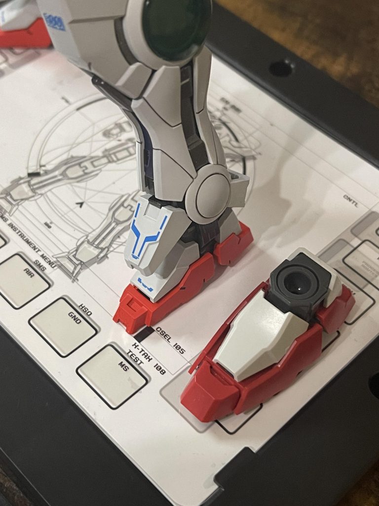 また、足をキットの物より少し小型に作り直し、ハンドパーツをMGデュナメスの物を使用できるようにジョイントパーツを製作しました。