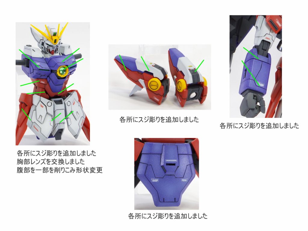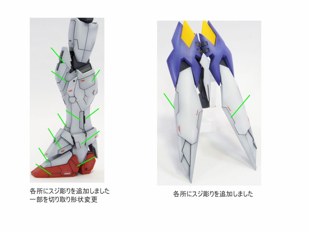 各所にスジボリにて情報量を追加して塗分け 太ももをパテにて幅…