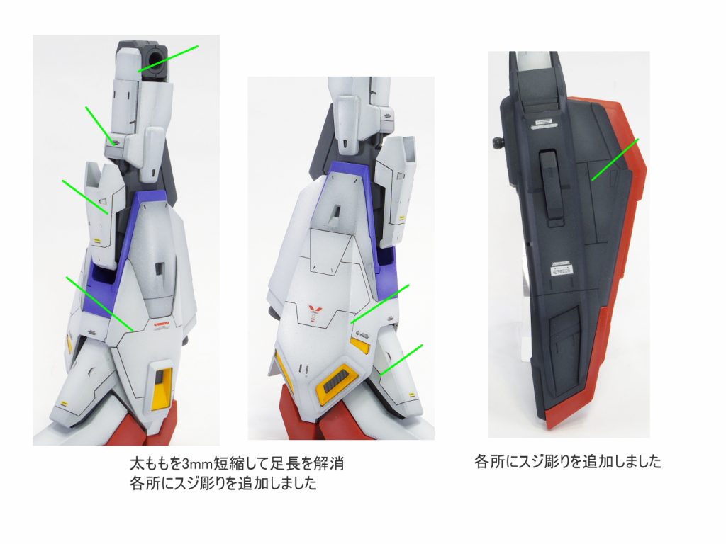 各所にスジボリにて情報量を追加して塗分け 太ももをパテにて幅…