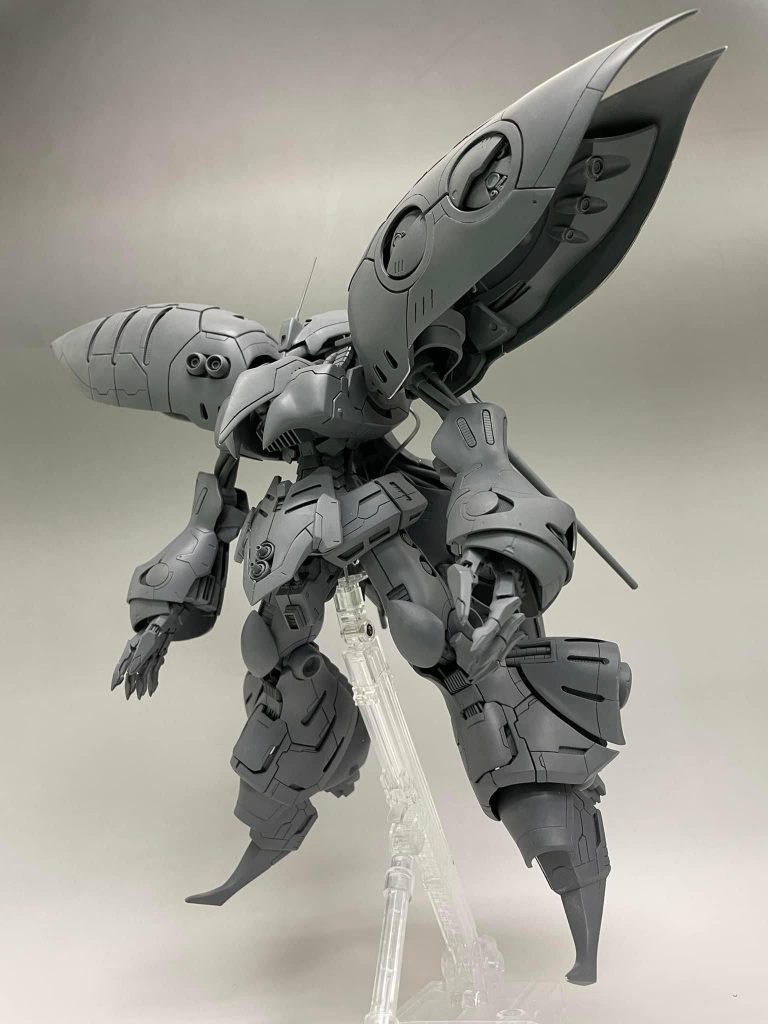 MGキュベレイ・アンベリールをベースにパテ、プラ板などで造形し、その後も徹底的にディテールアップした量産型キュベレイです。