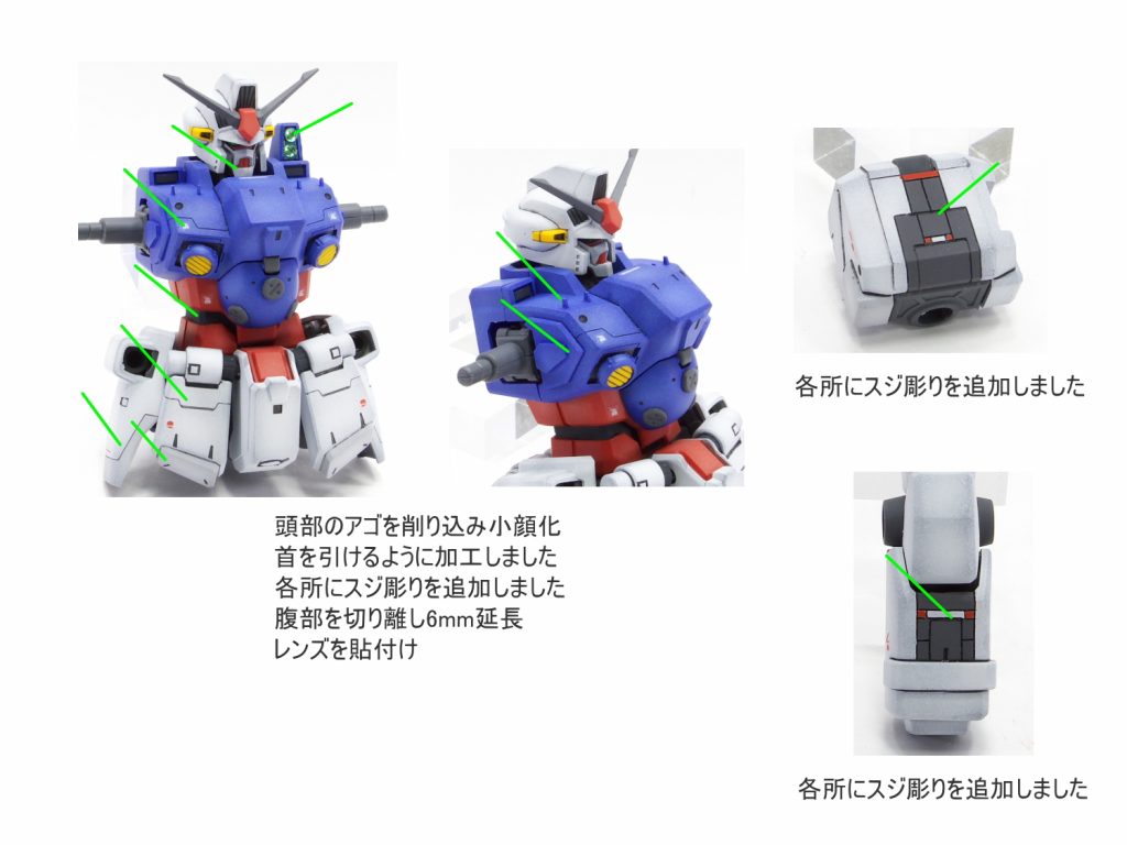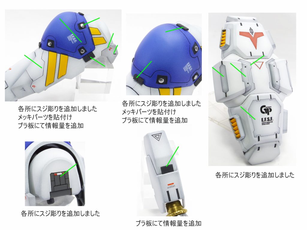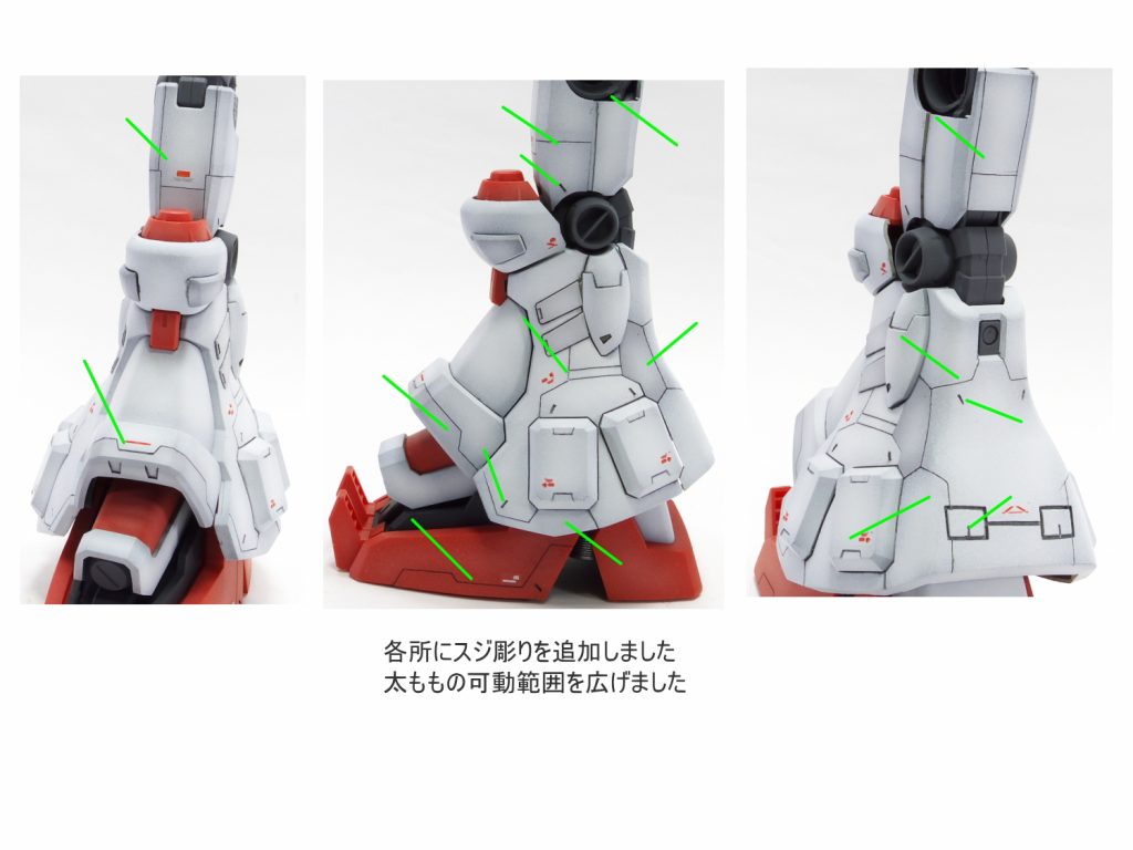 各所にスジボリにて情報量を追加して塗分け 太ももをパテにて幅…