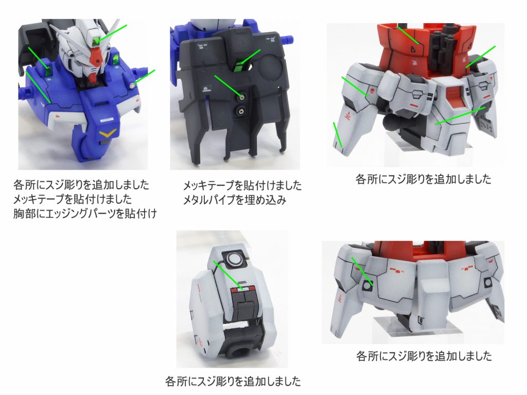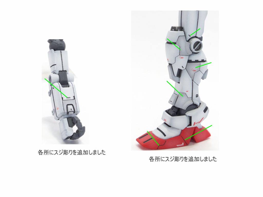 各所にスジボリにて情報量を追加して塗分け 太ももをパテにて幅…