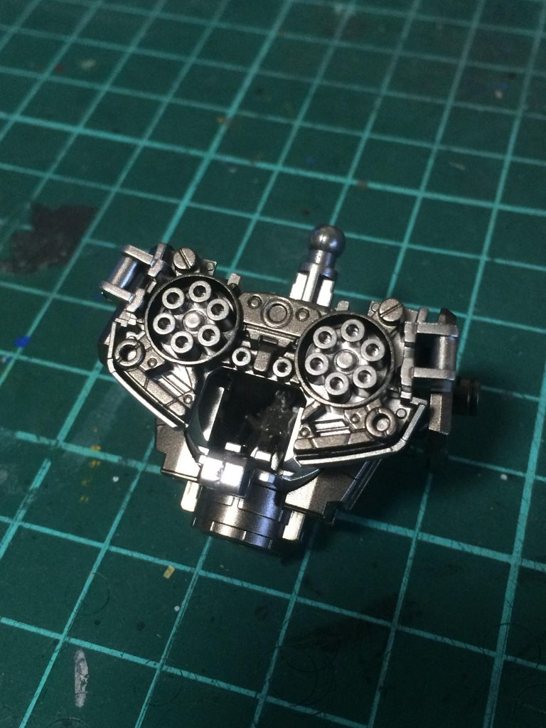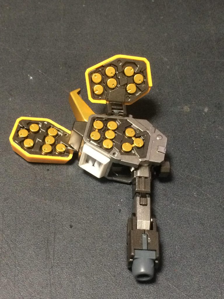 全身に散りばめられたミサイルはコレまたガイアカラーのスターブライトゴールドにクリアーイエローを混ぜたものを塗装。