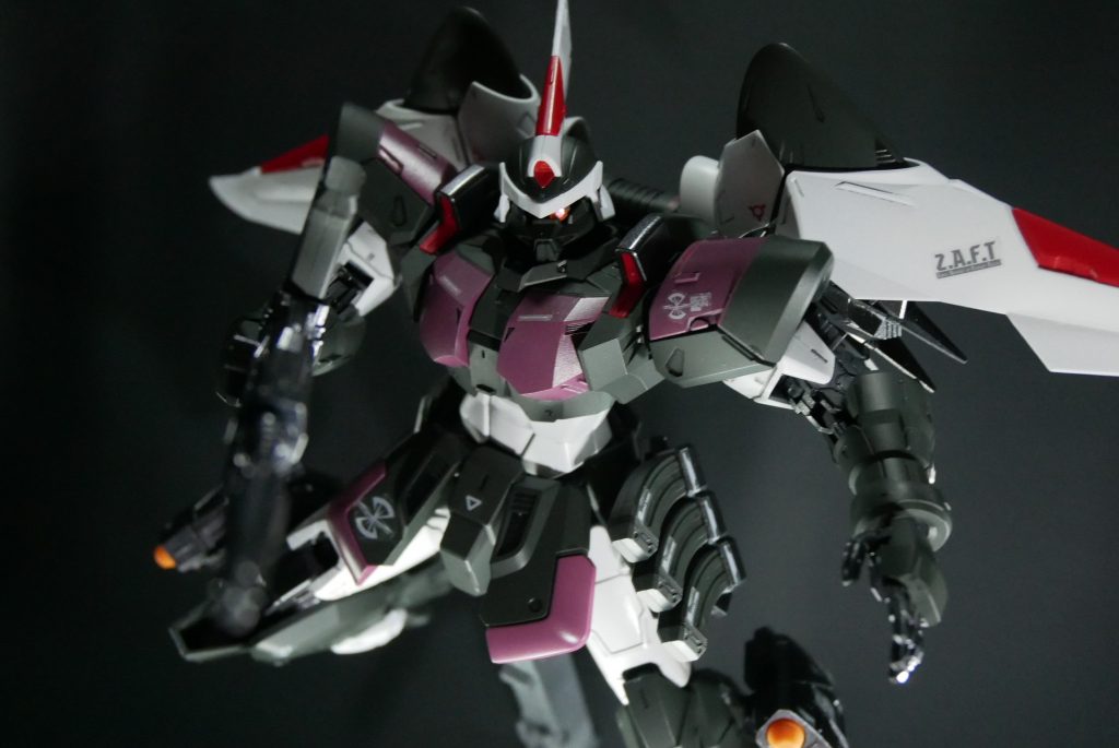 MGの中でも何故かモビルジンは、お店で売れ残こり組(´;ω;`)。そういえば、家にも2機あるな・・・。普通に作っても面白くないなと思い、SEED DESTINEYでユニウスセブンを地球に落とすという大災害を起こしたテロリスト集団が乗るジンハイマニューバ2型カラーにしてみました。改造技術はないので、色分けだけです。