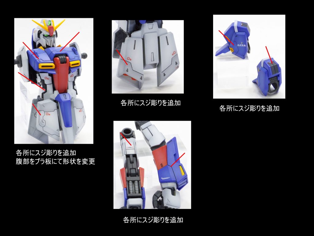 本体の各所のプロポーションを変更しました。 全体的にスジ彫り…