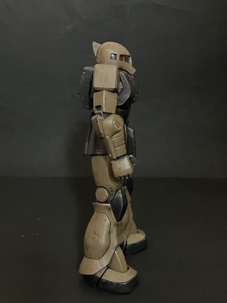 陸戦型モビルスーツらしいデザートカラーと歴戦を物語るウェザリングが最高に渋いですね!