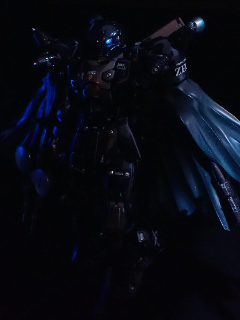 ![コンセプトとしてまず”ジオンの亡霊”というコンセプトを立てそこからマントと暗めの蒼を基調にした見た目に決定。次に漫画[ジョニーライデンの帰還]に出てくるゲルググ・ウェルテクスのように見た目は旧いMSだけど、中身は高スペック機体という設定を採用しました。](https://gumpla.jp/wp-content/uploads/2022/12/PC090007-1-1024x768.jpg)