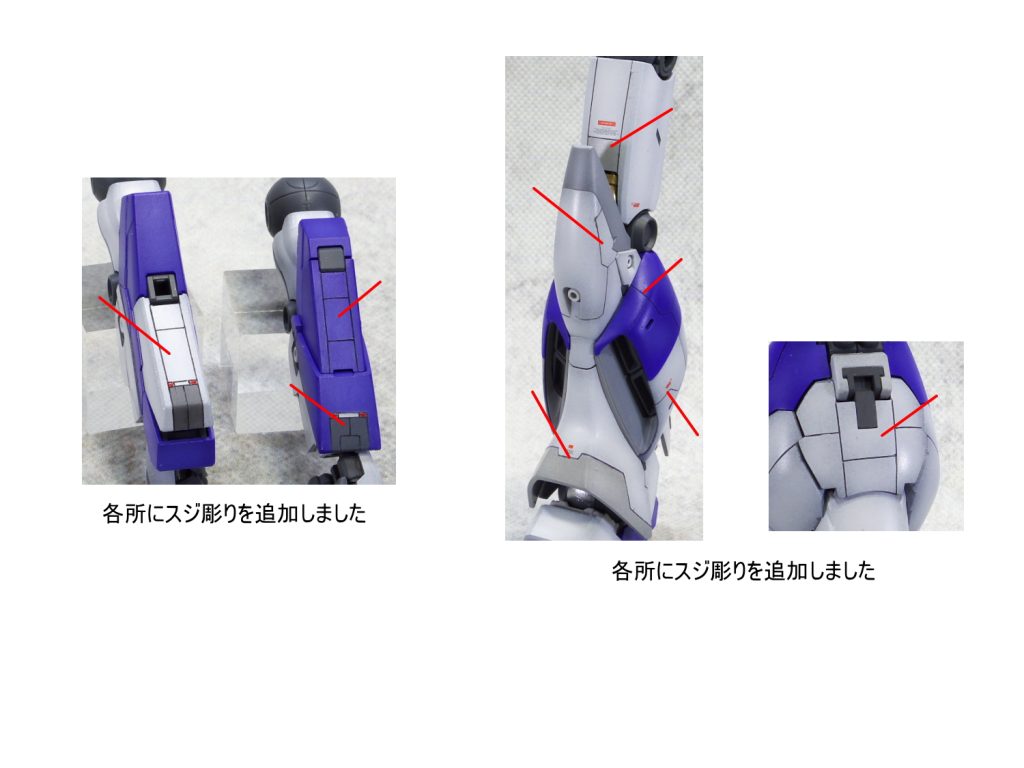 太ももをプラ板にて1mm幅増ししました。 各所にスジ彫りの追…