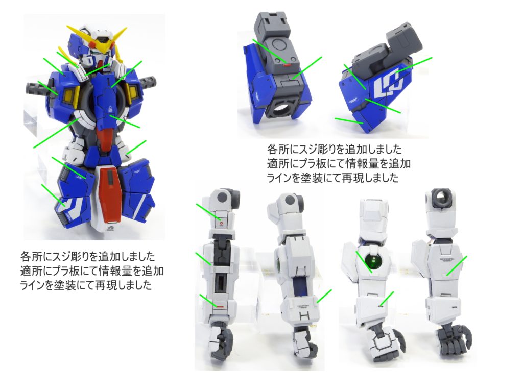 太ももをプラ板にて1mm幅増ししました。 各所にスジ彫りの追…