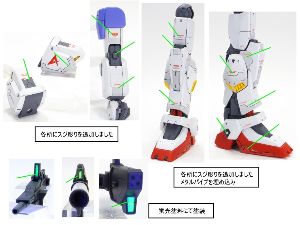 太ももをプラ板にて1mm幅増ししました。 各所にスジ彫りの追…