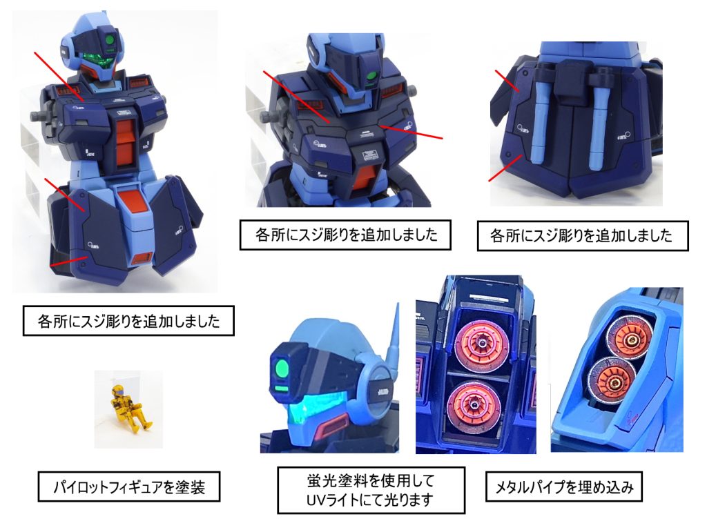 適所にスジ彫りの追加とプラ板チップを埋め込みました。 グラデ…