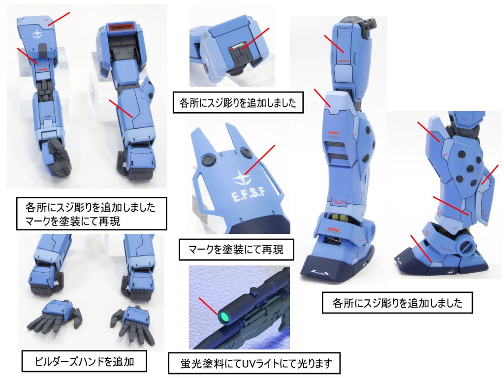 太ももをプラ板にて1mm幅増ししました。 各所にスジ彫りの追…