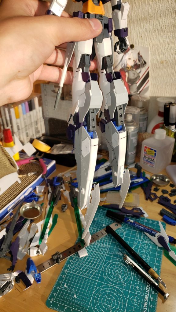 プラ板、瞬間接着剤、パテを使って何とか形にしました。シンプルですが、今の私にはこれが限界でした。でも結構満足してます。最終的には足先のブレードは外しました。理由はでかくなりすぎるからです。