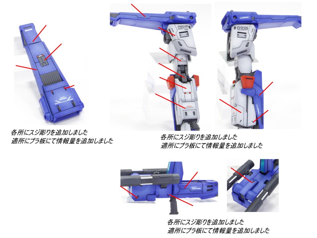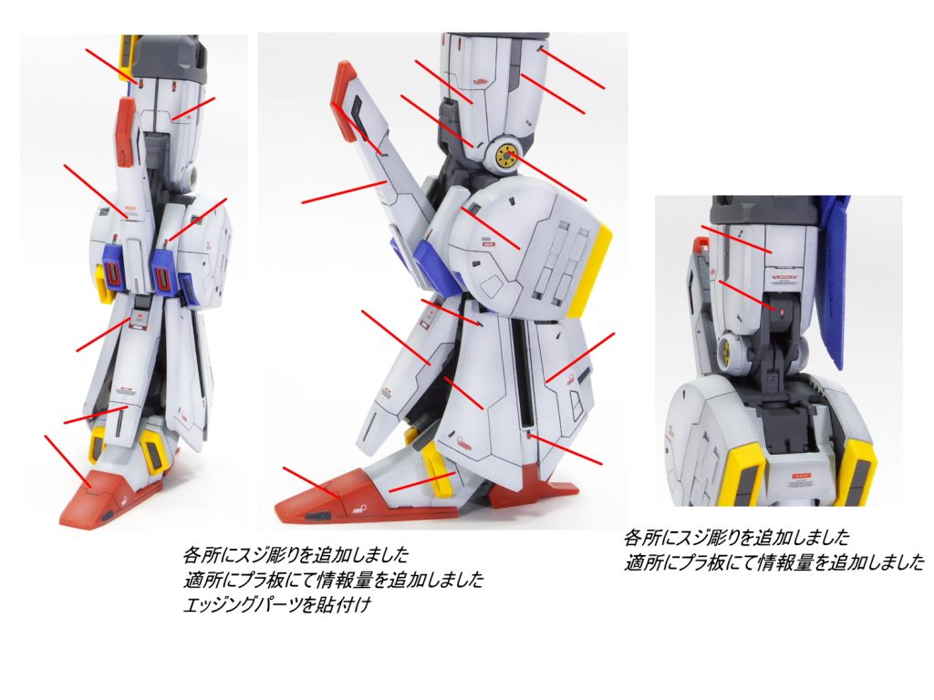 各所にスジボリにて情報量を追加して塗分け 太ももをパテにて幅…