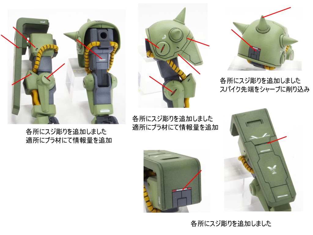 本体の各所のプロポーションを変更しました。 全体的にスジ彫り…