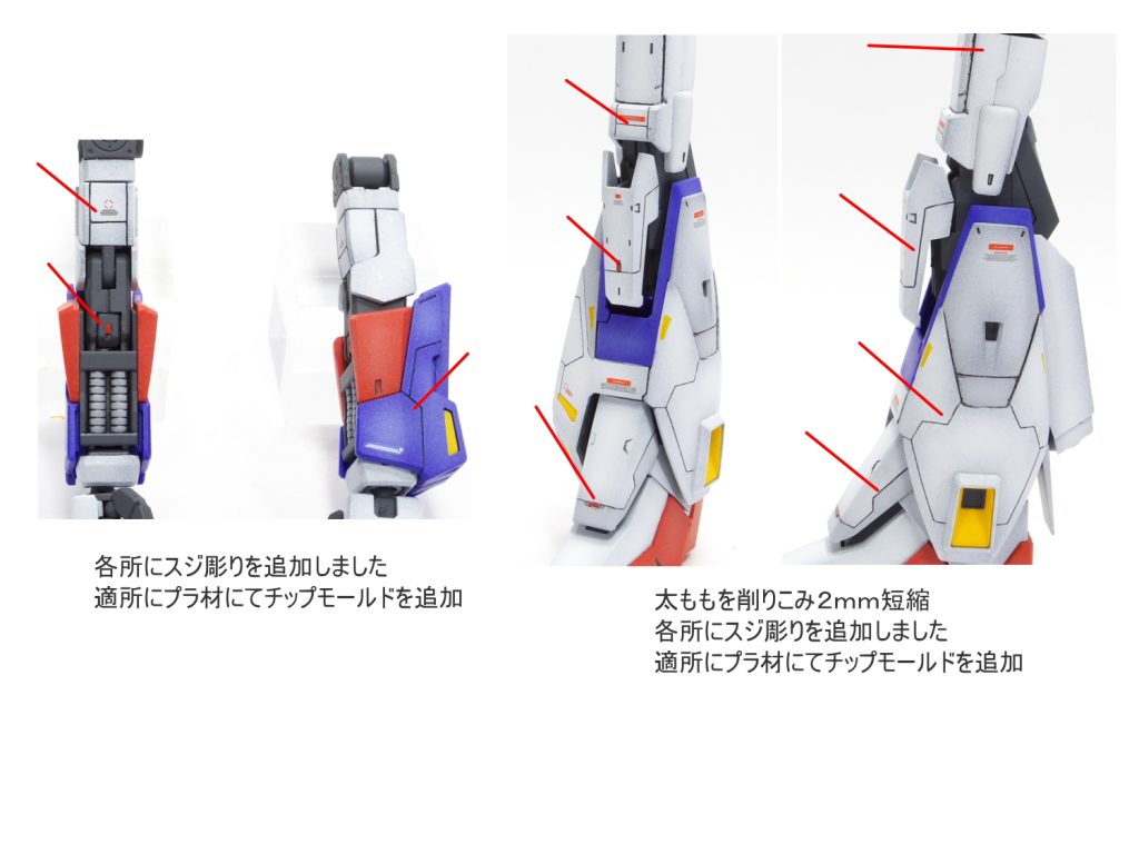 太ももをプラ板にて1mm幅増ししました。 各所にスジ彫りの追…