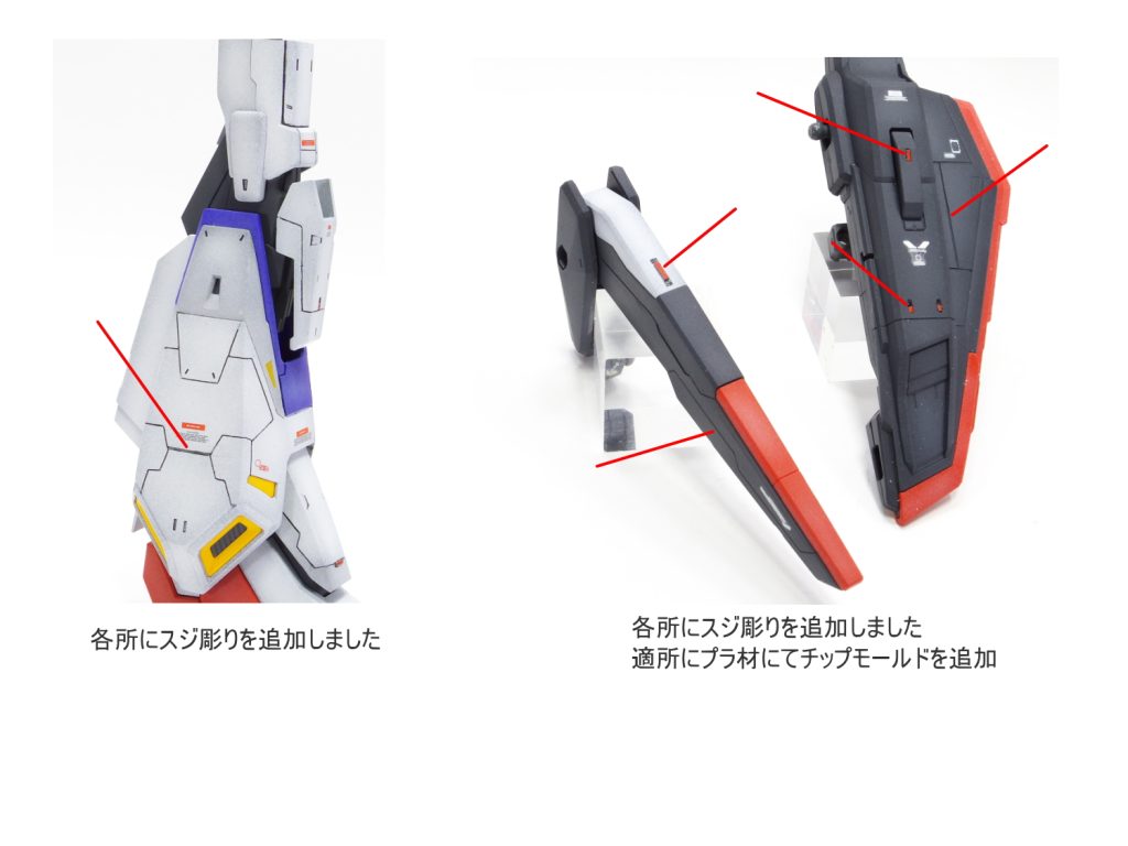 本体の各所のプロポーションを変更しました。 全体的にスジ彫り…