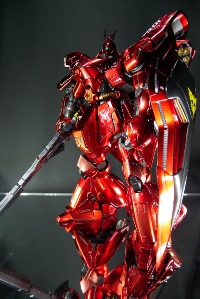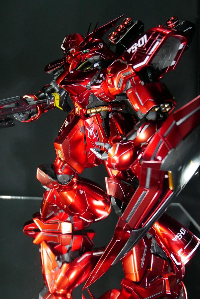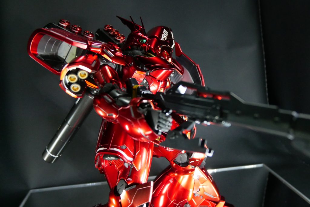 最後まで観ていただきありがとうございました。2018年の発売でしたが、当時の最新の技術を使って加工コーティングされたサザビーは、シャアが最後までアムロと死闘を繰り広げたMSらしく神々しくお勧めなキットです。