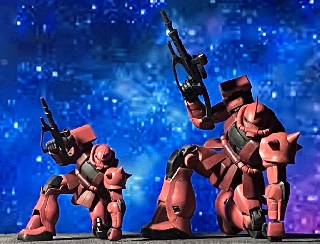 前回アップしたHGUCシャア専用ザクRIVIVEの出来の良さに感動した勢いで、パチ組みのままだったMG ver2.0のシャアザクも全面塗装しました。