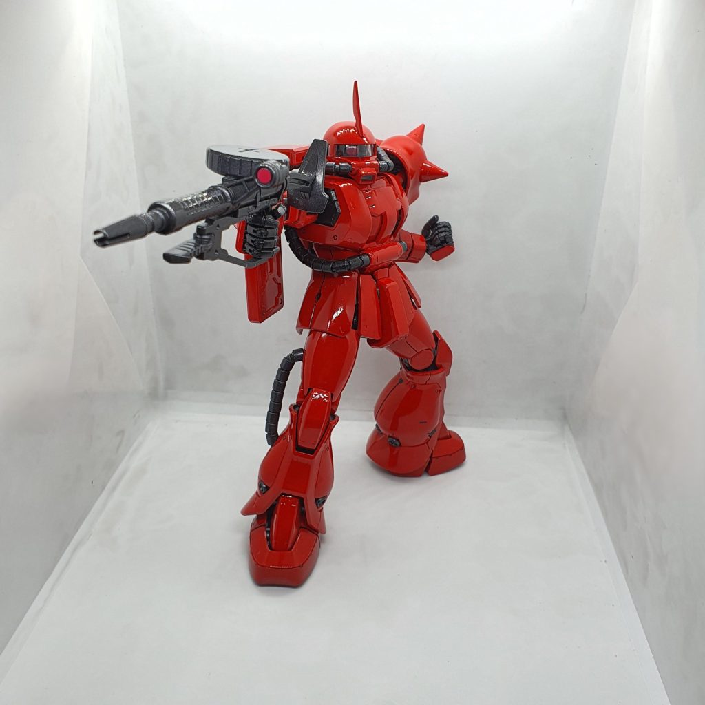 Commission work by @neorainsky on Instagram. The color scheme was inspired by real life sports car. Red was chosen for S-type Zaku to emphasize it’s role as a commander with higher performance than ordinary F-type green Zakus.